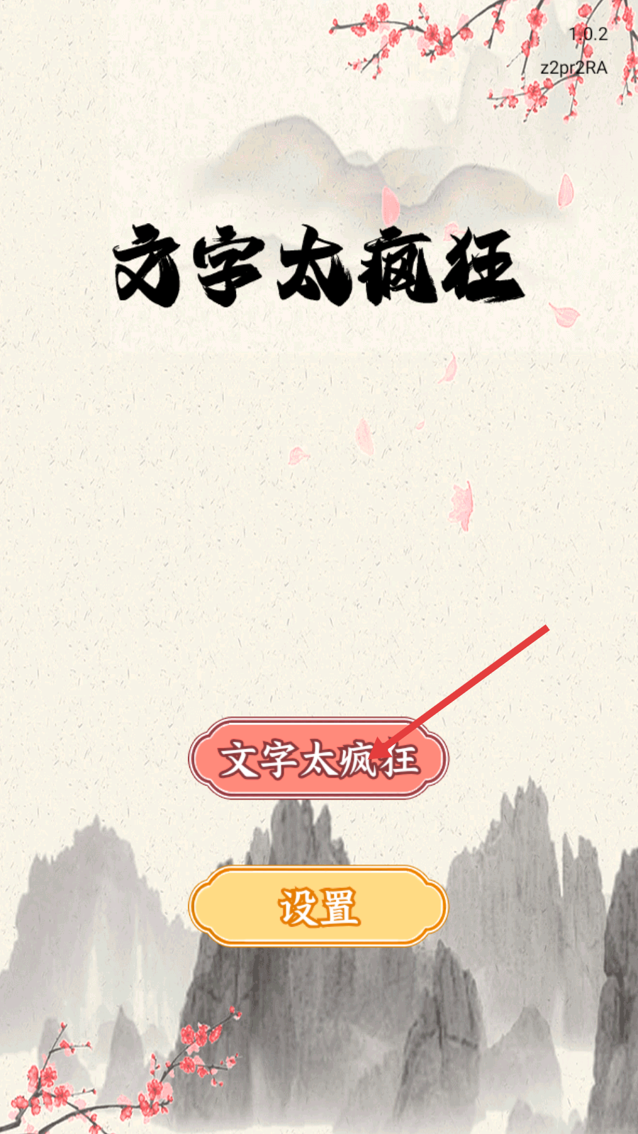 1、进入游戏后,点击【文字太疯狂】按钮开启游戏,可先简单熟悉界面布局再进行操作。