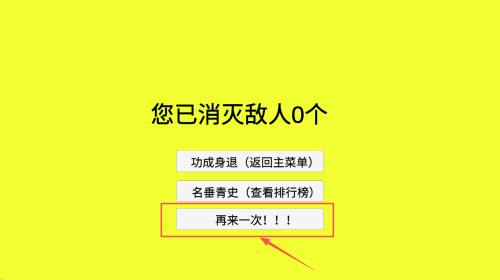 4、重新开始游戏:游戏结束后,点击“再来一次!!!”按钮重新挑战。