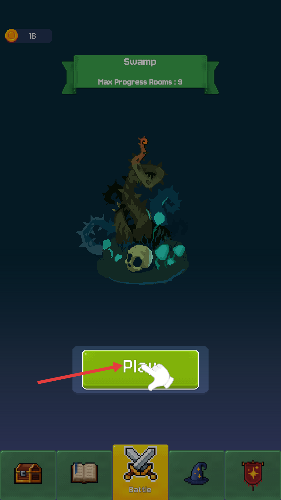 1、点击绿色【Play】按钮,进入【Swamp】场景,该场景最大探索房间数为9,开启冒险。