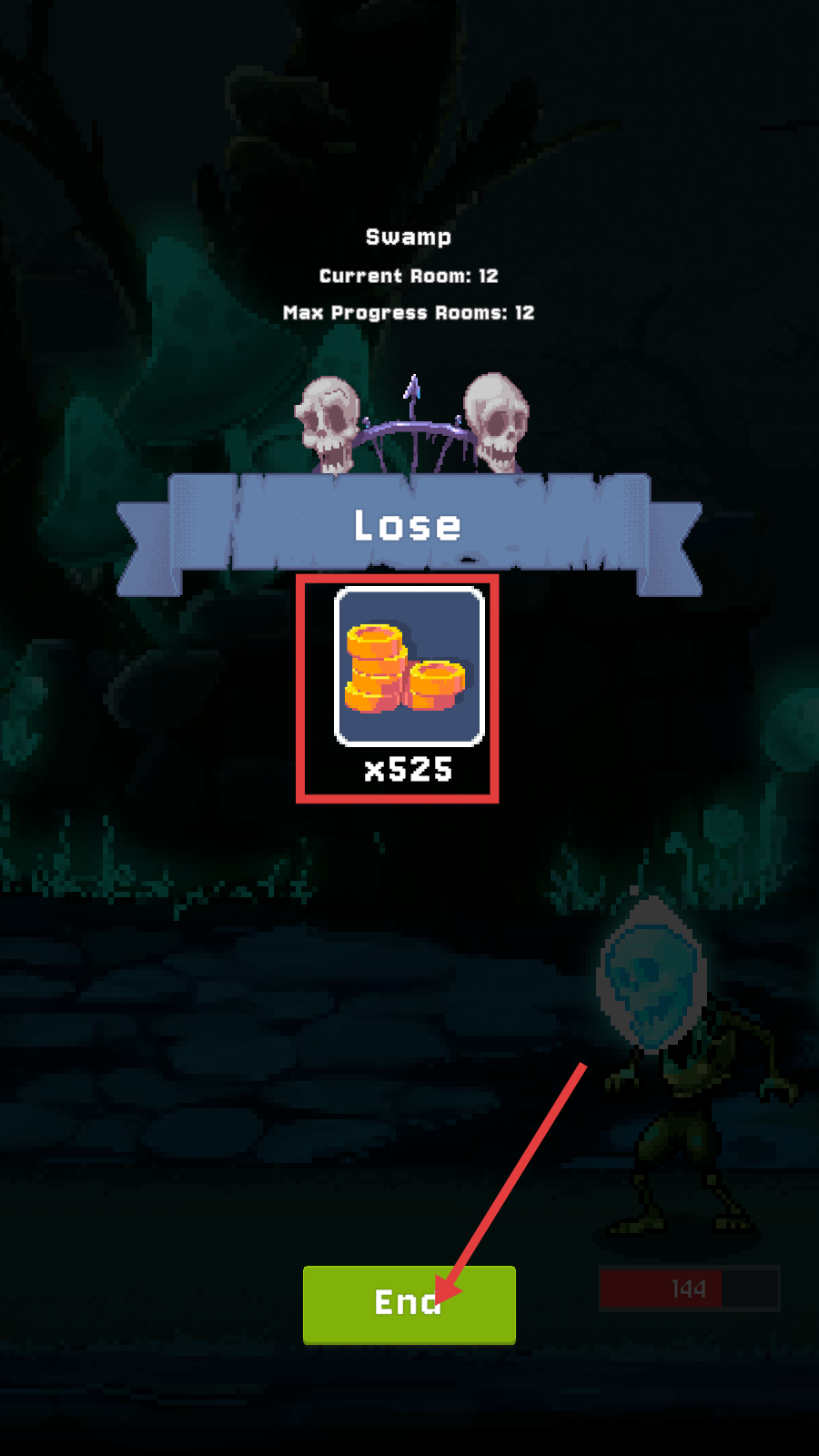 4、若战斗失败显示【Lose】,可点击绿色【End】按钮,此次虽失败但能获得525金币,之后可重新挑战。