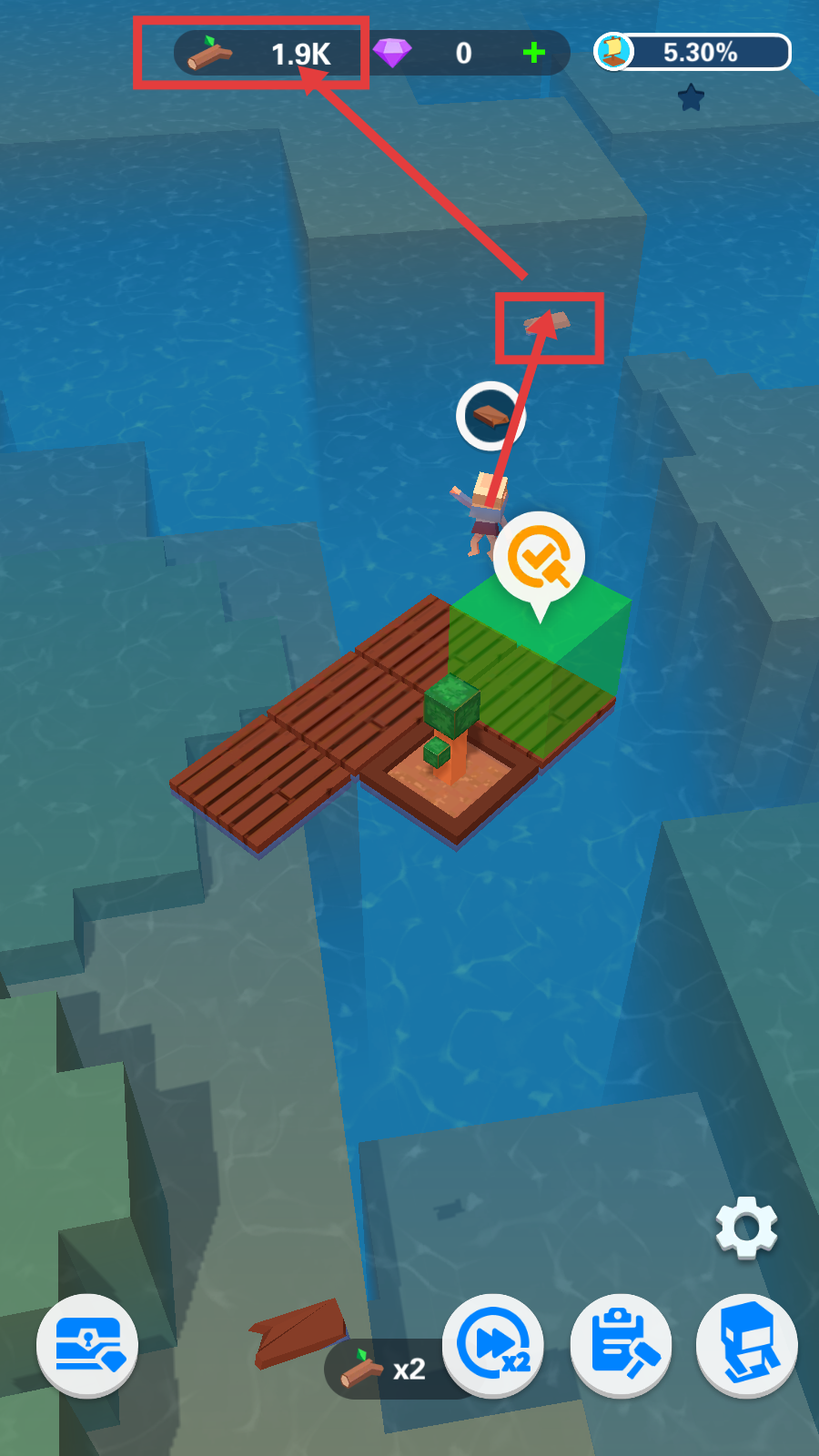3、继续收集海上漂浮的木材,使木材数量增长到【1.9K】,同时扩展木筏的建造范围,提升木筏规模。