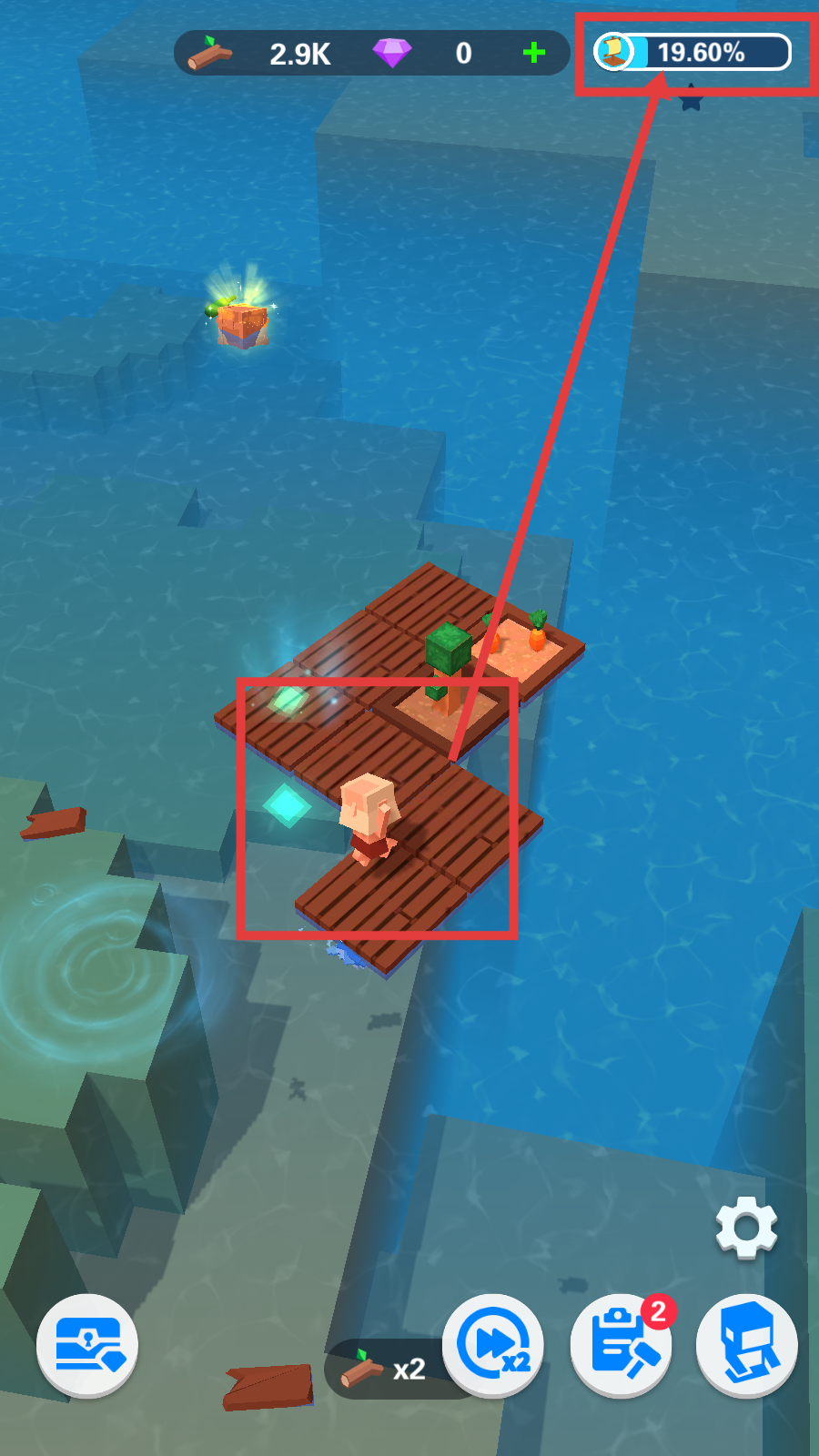 4、随着木筏持续建造,进度达到【19.60%】,木材积累至【2.9K】,可进一步完善木筏设施,为探索更广阔区域做准备。