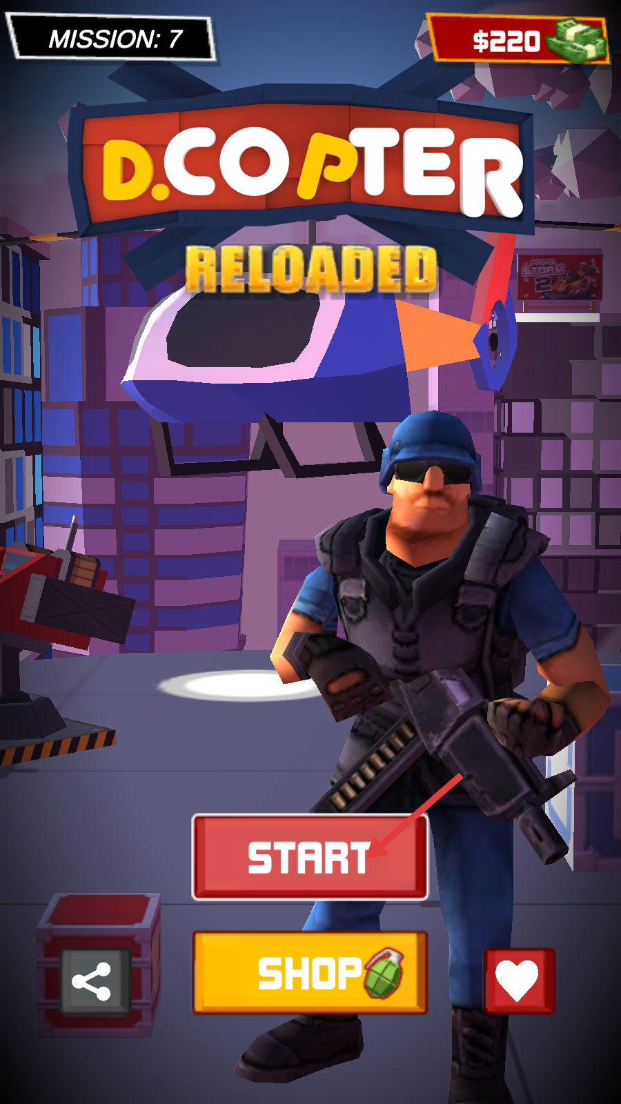 1、进入《D.COPTERRELOADED》【MISSION-7】,点击红色【START】按钮,开启本任务的直升机战斗挑战。