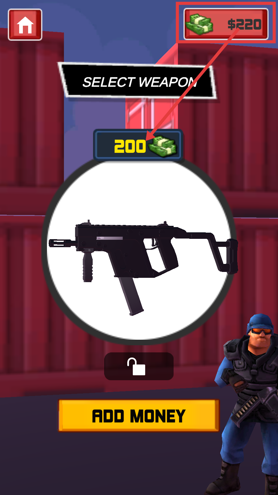 2、在武器选择界面,可花费【200】金币解锁新武器,利用金币资源提升战斗能力,为任务7的战斗做准备。