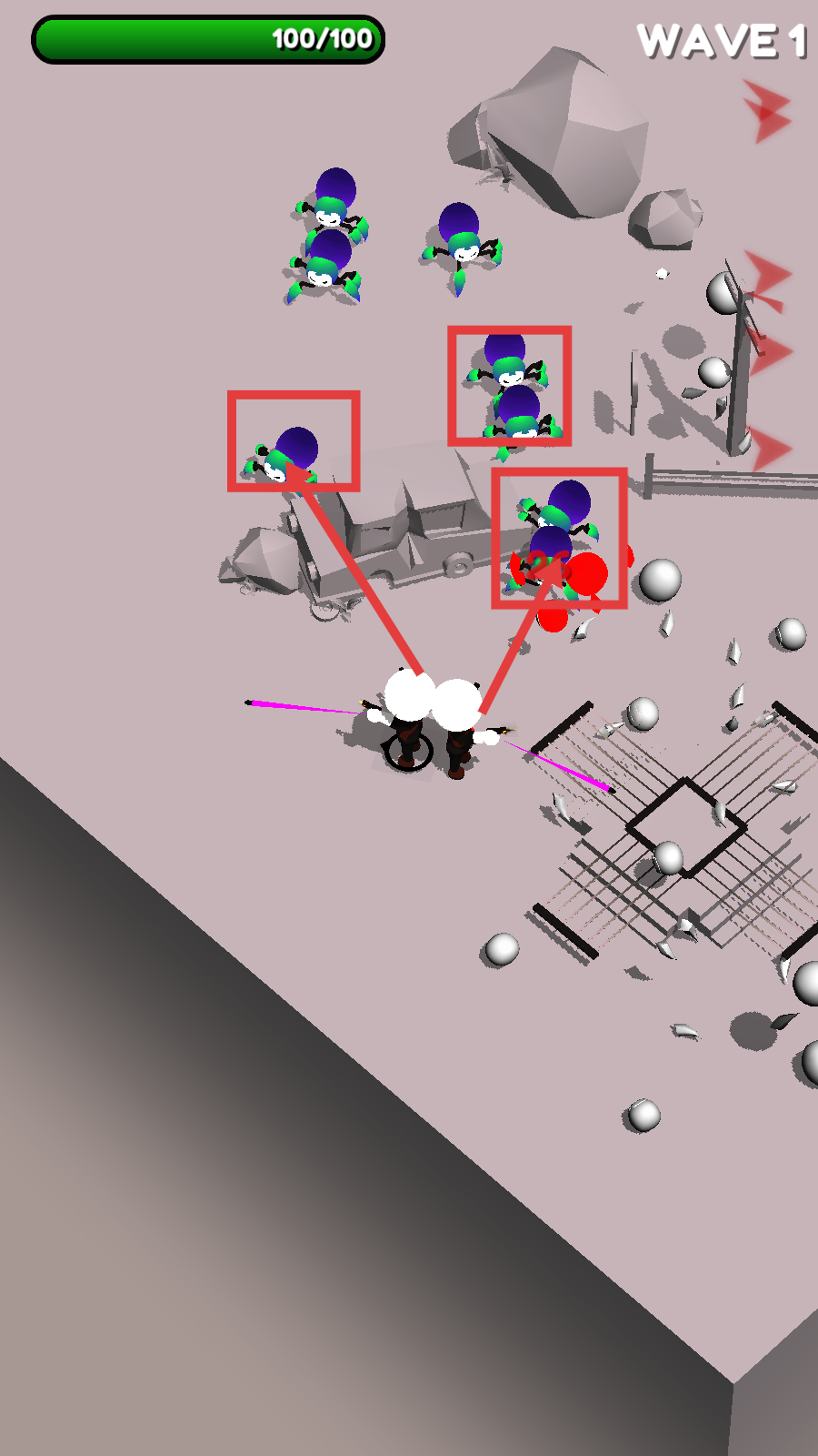 3、遇到紫色敌人时,操控角色发起攻击,利用武器精准打击多个敌人,同时留意自身走位,防止被敌人围攻。