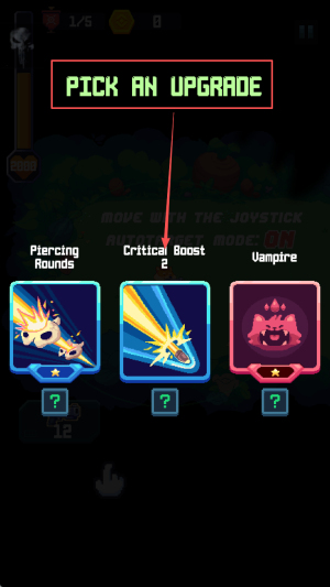 1、如何进行升级选择:在游戏过程中,点击“PICK AN UPGRADE”按钮选择升级选项。