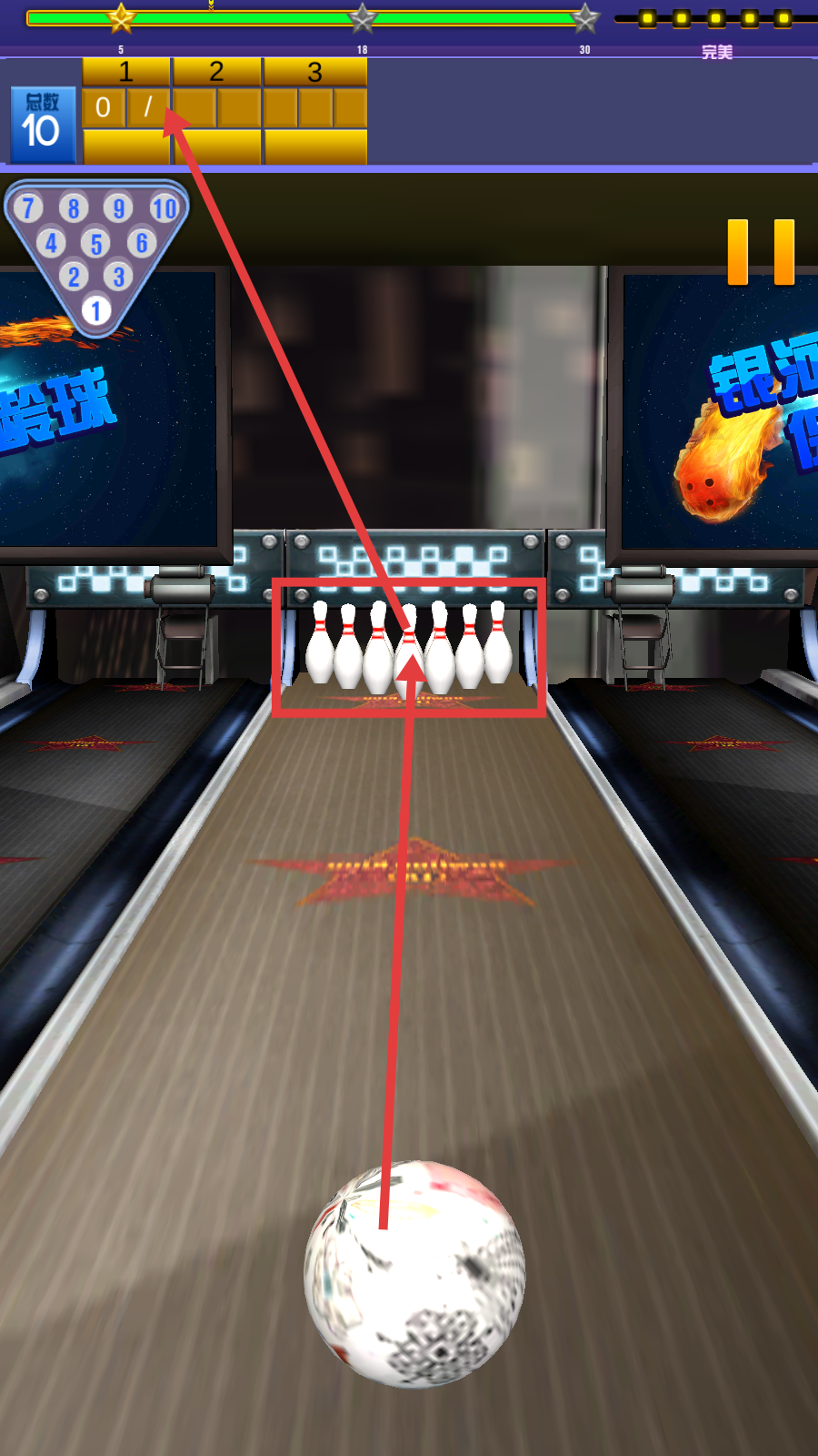 2、拖动屏幕控制蓄力力度,避免力度过强或过弱,确保保龄球抛出后能精准击打瓶瓶,最大化击倒数量。