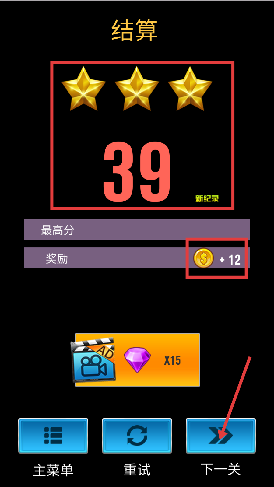 4、每局结束若达成高击倒率,可获得【三星-评分】与【39-得分】,还能解锁金币奖励,用于解锁新球具。