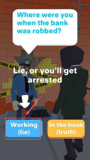 2、接着,当被问选择“Working (lie)”或“In the bank (truth)”来回答。
