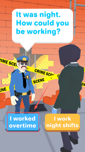 3、然后,根据问题选择合适的答案以避免被捕,例如选择“I work night shifts”来解释夜间工作的情况。