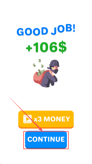 4、最后,成功避开逮捕并完成关卡后,点击“CONTINUE”按钮继续游戏。