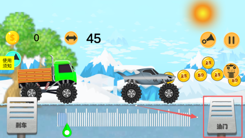 4、最后,点击油门按钮控制卡车前进,点击刹车按钮减速。