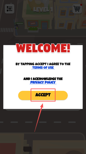 1、首先,阅读并同意游戏的用户协议和隐私政策,点击“ACCEPT”按钮以进入游戏。