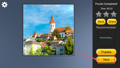 4、最后,完成拼图后,点击“Next”按钮继续下一个拼图。