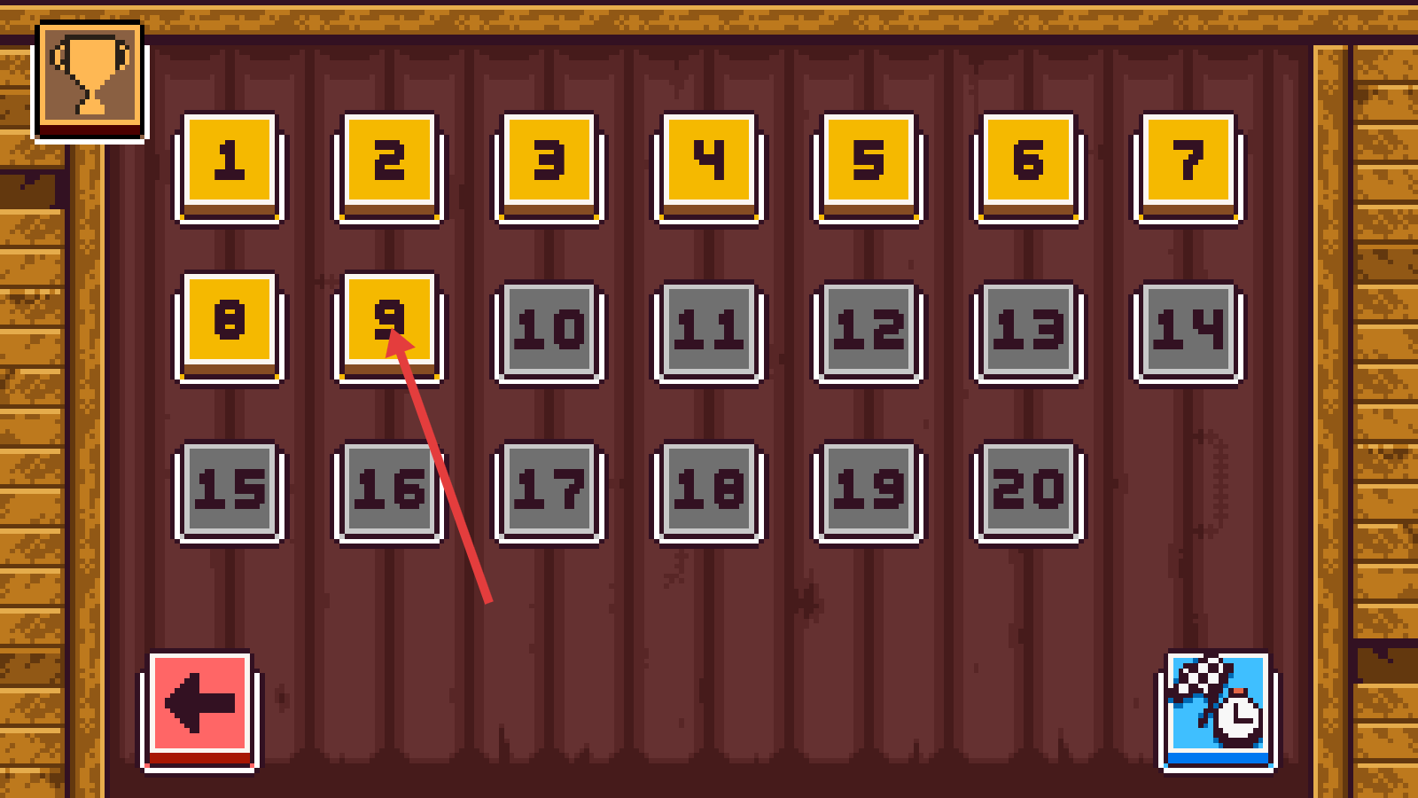 1、进入关卡选择界面,点击【9】号关卡,开始挑战该关卡,逐步推进游戏进程。