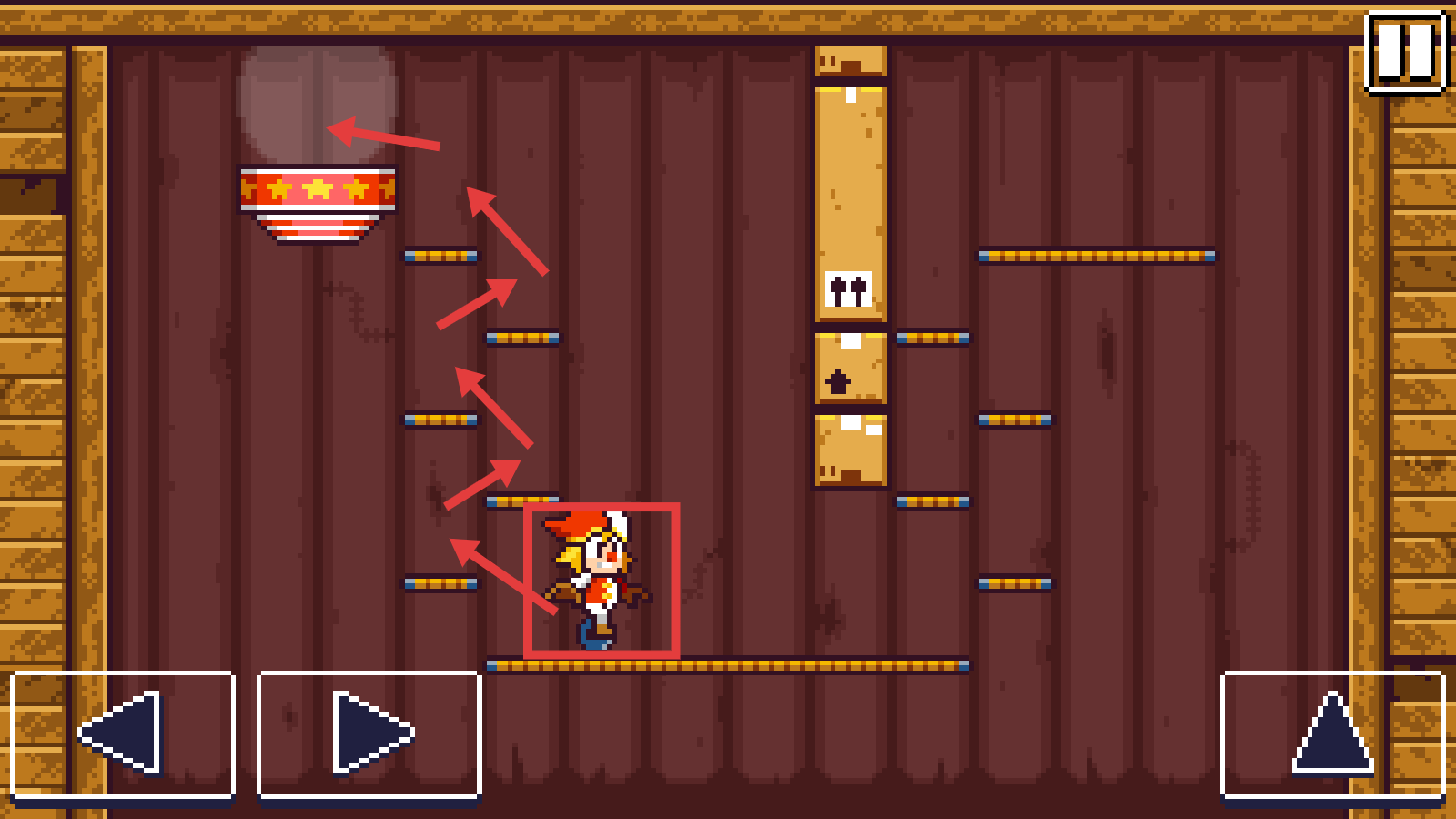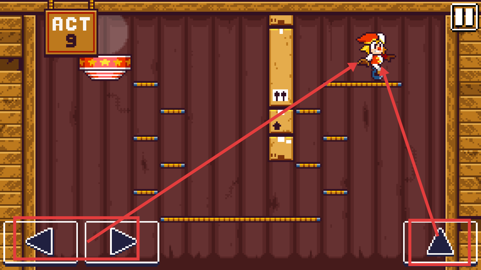 2、在关卡中,利用左下角左右方向按钮和右下角跳跃按钮,操控角色在平台上移动,探索关卡内容。