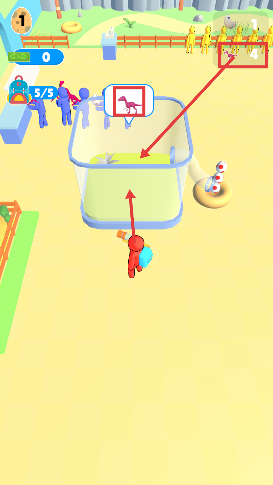 2、将捕捉到的恐龙放入展区,使背包达到【5/5】,完成该轮收集任务,提升展区恐龙数量至【4】。