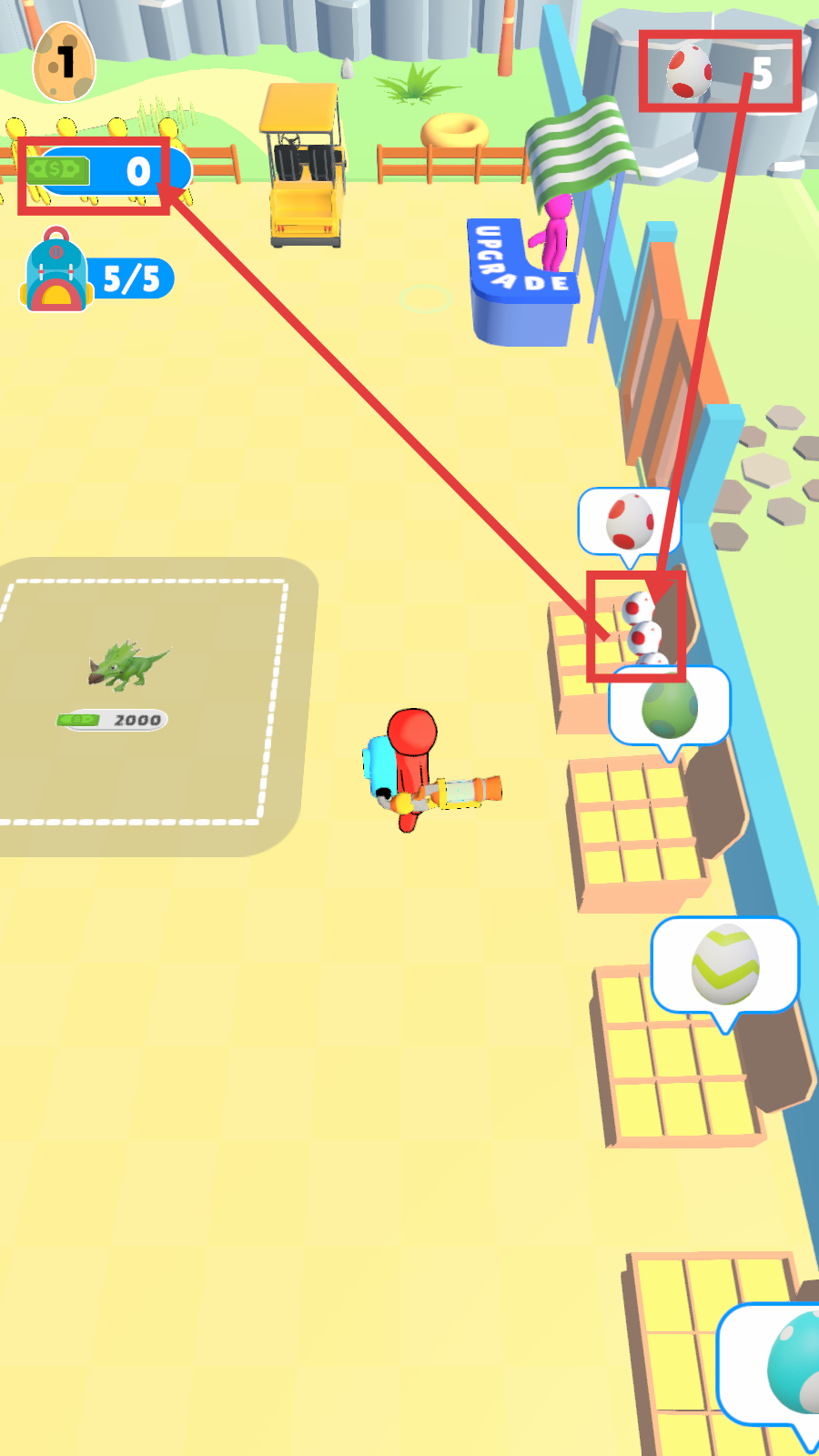 4、收集【恐龙蛋-5】,积累资源,关注左上角资源提示,逐步提升资源数量,为后续发展打基础。