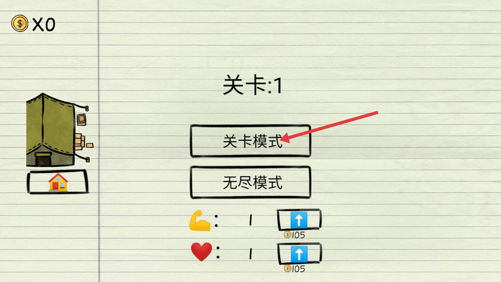 1、进入【关卡-1】,选择【关卡模式】,开启火柴人战斗关卡,准备部署兵力。