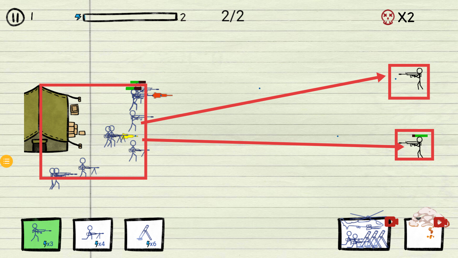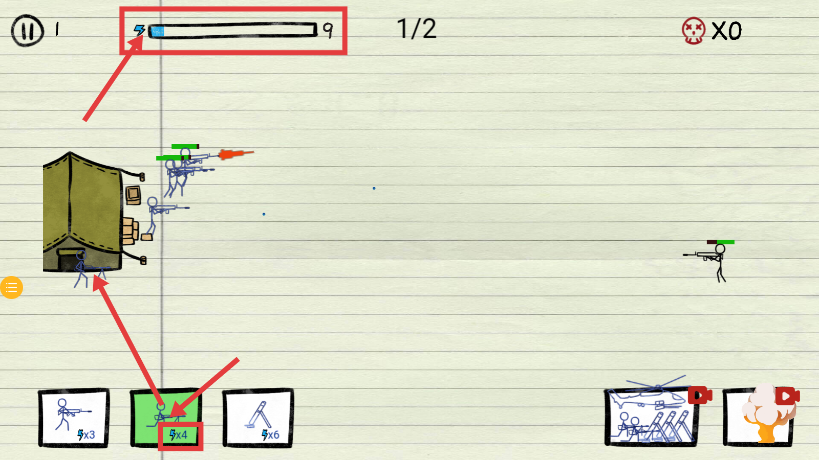 3、指挥我方火柴人部队,消灭敌方【火柴人】单位,扩大战斗优势,完成关卡阶段目标。