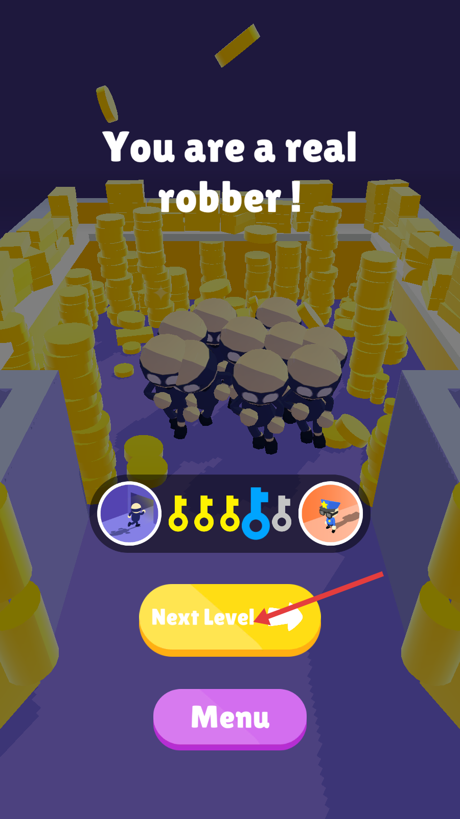 4、通关后,点击【Next-Level】按钮,进入下一关,继续挑战更高难度的盗窃关卡。
