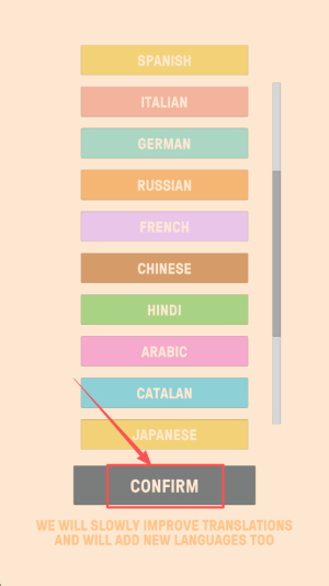 1、首先,选择你偏好的语言,点击“CONFIRM”按钮确认选择。