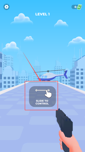 2、如何控制射击:进入游戏后,滑动屏幕中央的“SLIDE TO CONTROL”区域来瞄准,然后点击屏幕进行射击。