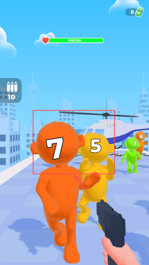 3、如何击败敌人:对准屏幕上的敌人进行射击,每个敌人头上有数字显示其生命值,射击直至生命值归零。