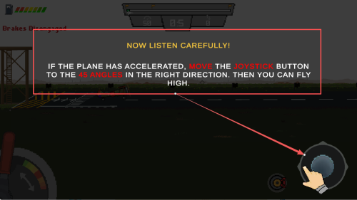 3、如何控制飞机起飞:当飞机加速后,将操纵杆向右移动45度,使飞机起飞。
