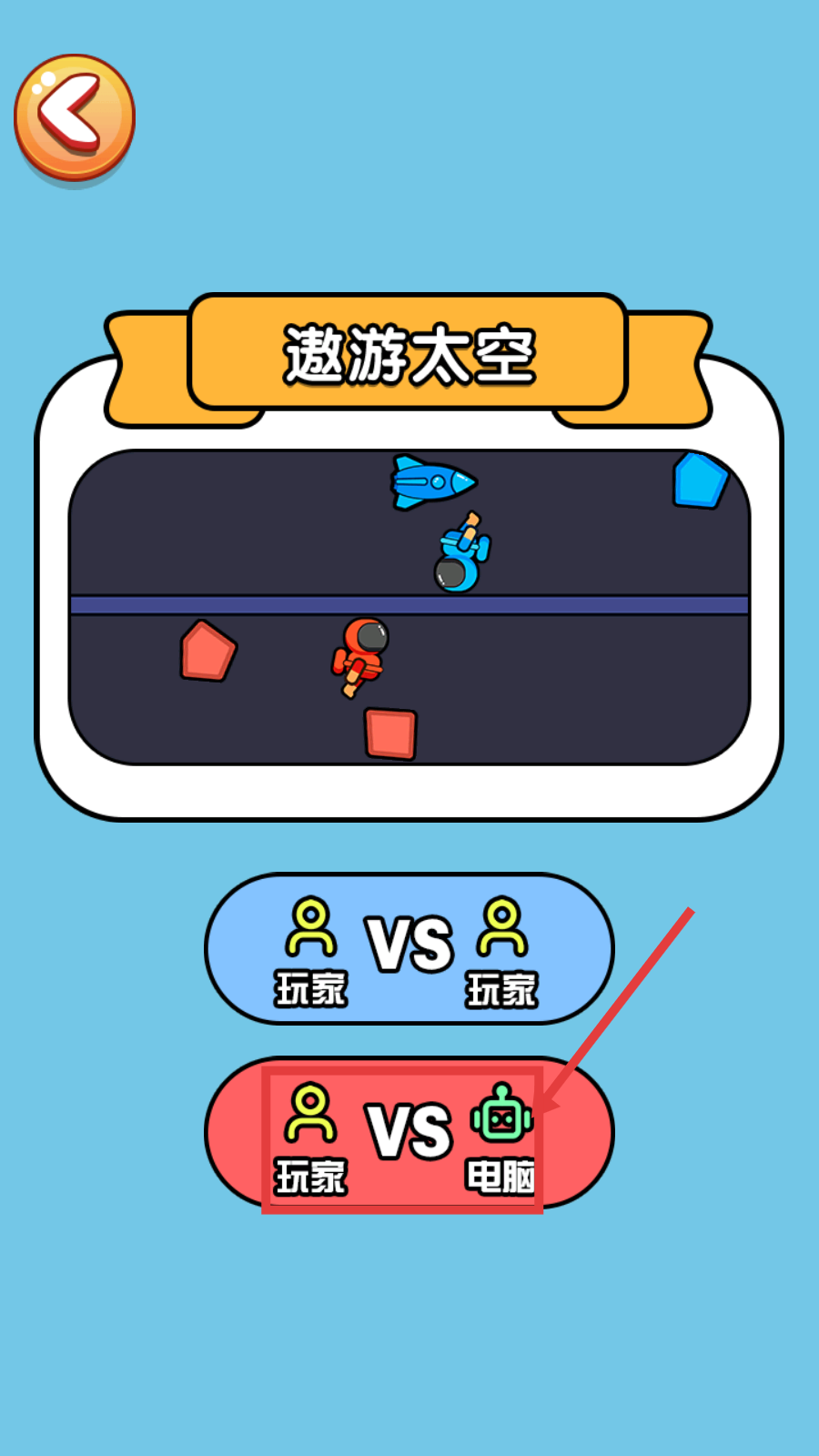 1、点击【玩家-VS-电脑】,进入【遨游太空】模式,开启与电脑的太空对战,开启太空冒险第一步。