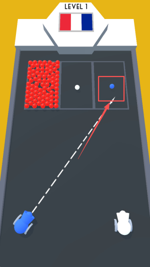 3、然后,通过拖动屏幕上的红色手柄来调整弹射角度和力度,然后释放以发射球体。