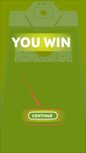 4、最后,成功将球体弹射入指定的洞中后,点击“CONTINUE”按钮继续游戏或进入下一关。