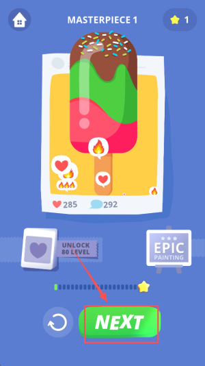 4、最后,如果绘画正确,点击“NEXT”按钮进入下一关。