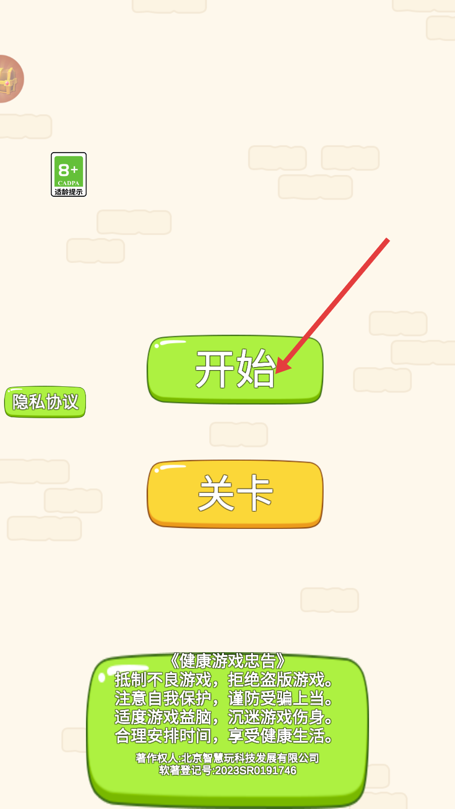 1、点击【开始】按钮,进入游戏,开启保护动物的画线解谜挑战,迈出游戏第一步。