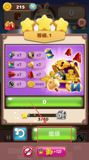 4、最后,完成关卡后,点击“继续”按钮以进入下一关或查看奖励。
