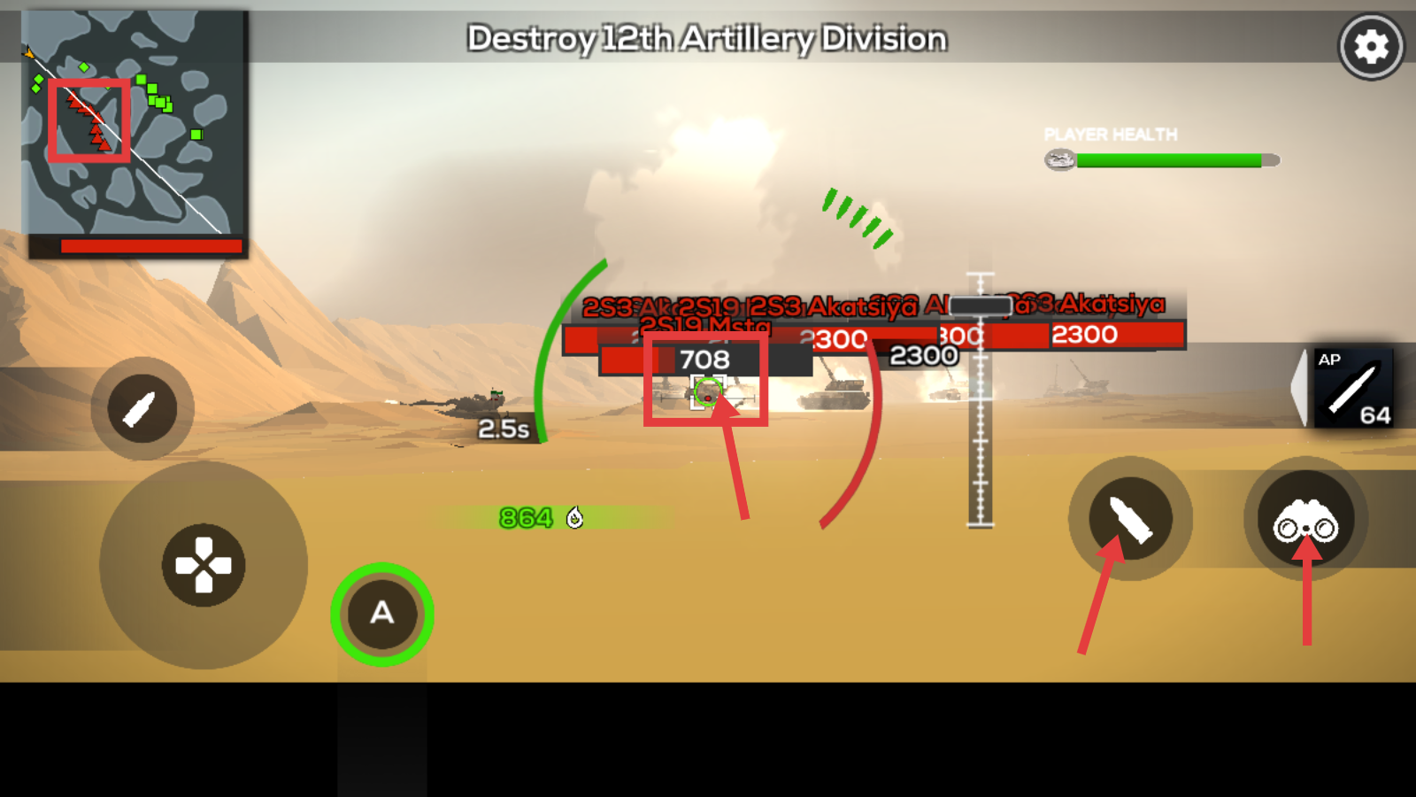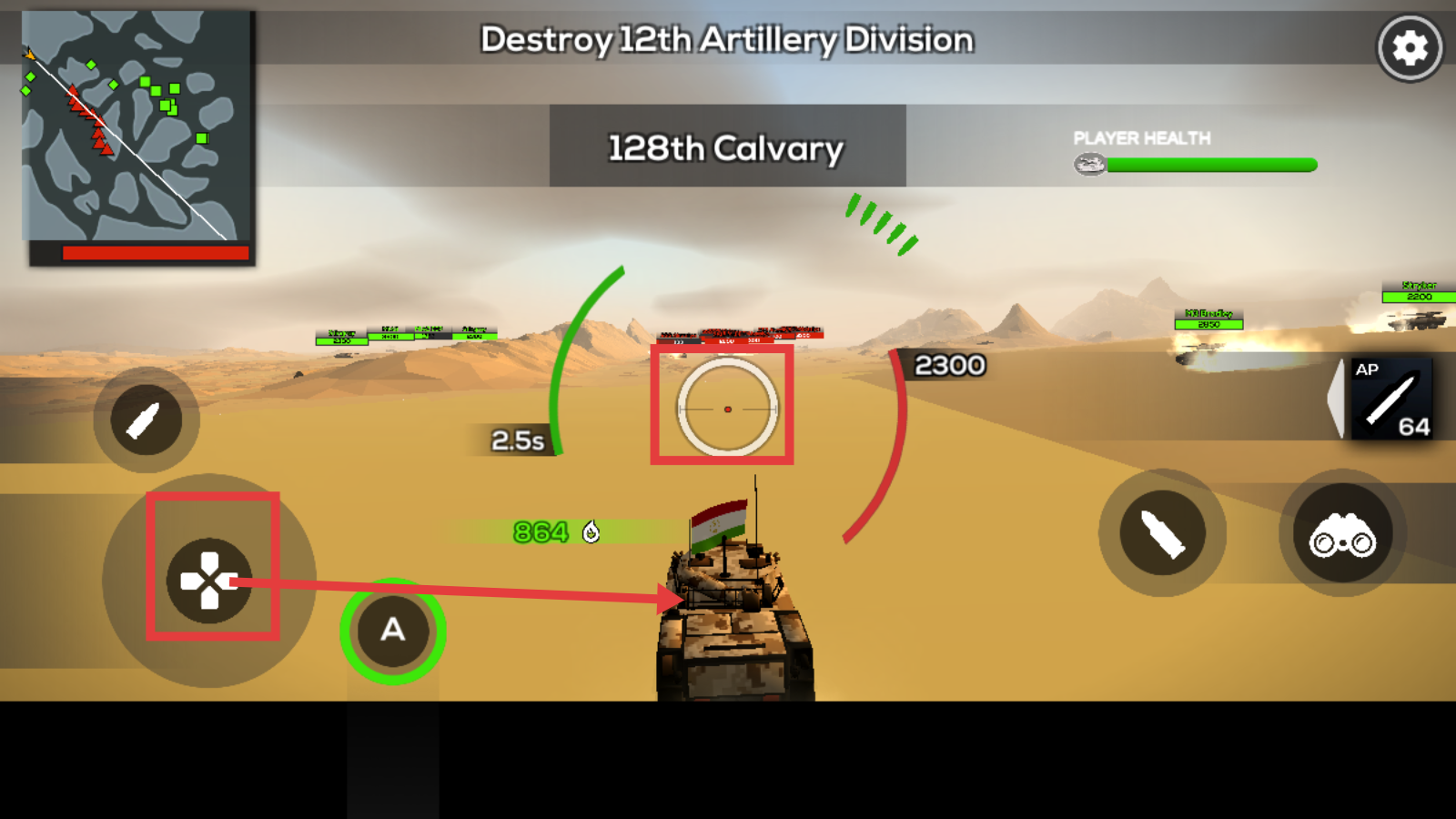 2、战斗中通过方向键控制坦克移动,瞄准敌人,推进【Destroy-12th-Artillery-Division】任务的完成。