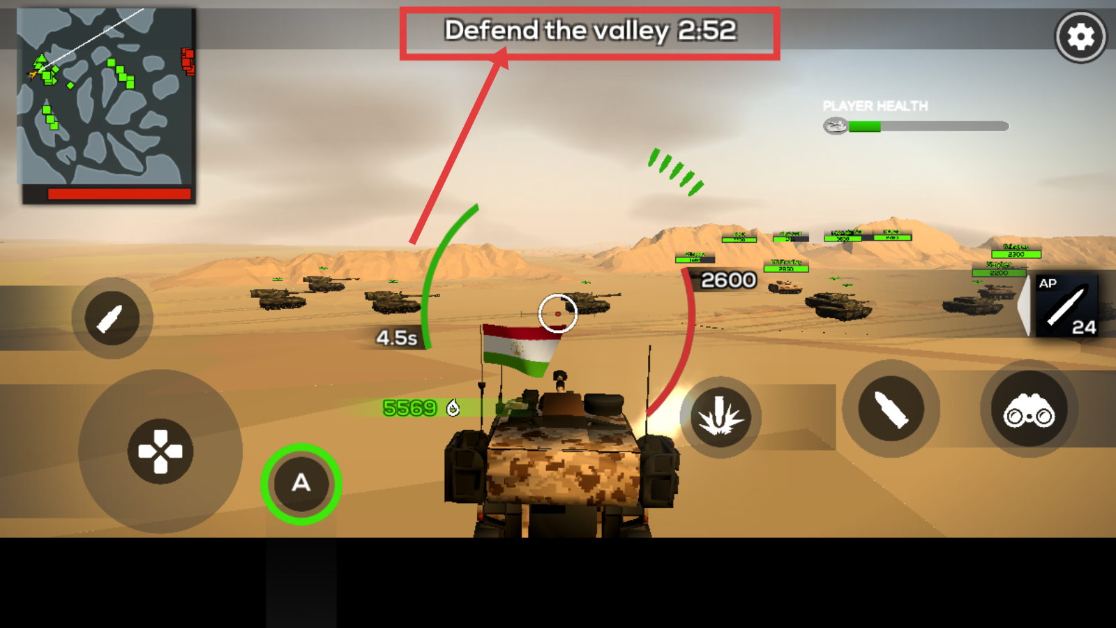 4、接到【Defend-the-valley-2:52】任务时,坚守山谷,凭借坦克火力击退敌人,完成防守目标。