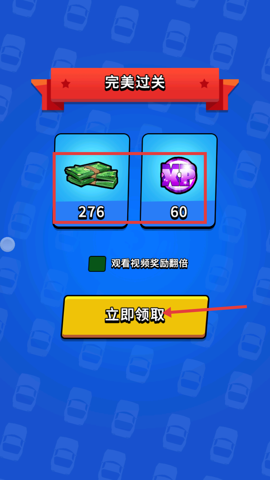 4、完美过关后,点击【立即领取】,获取276金钱和60XP奖励,助力角色成长。