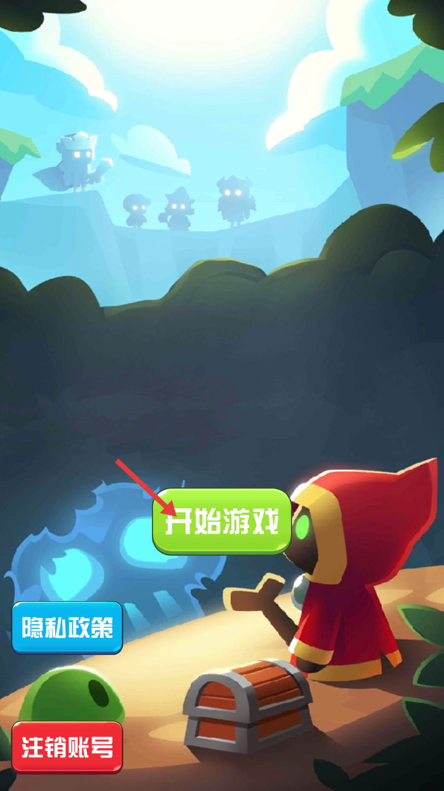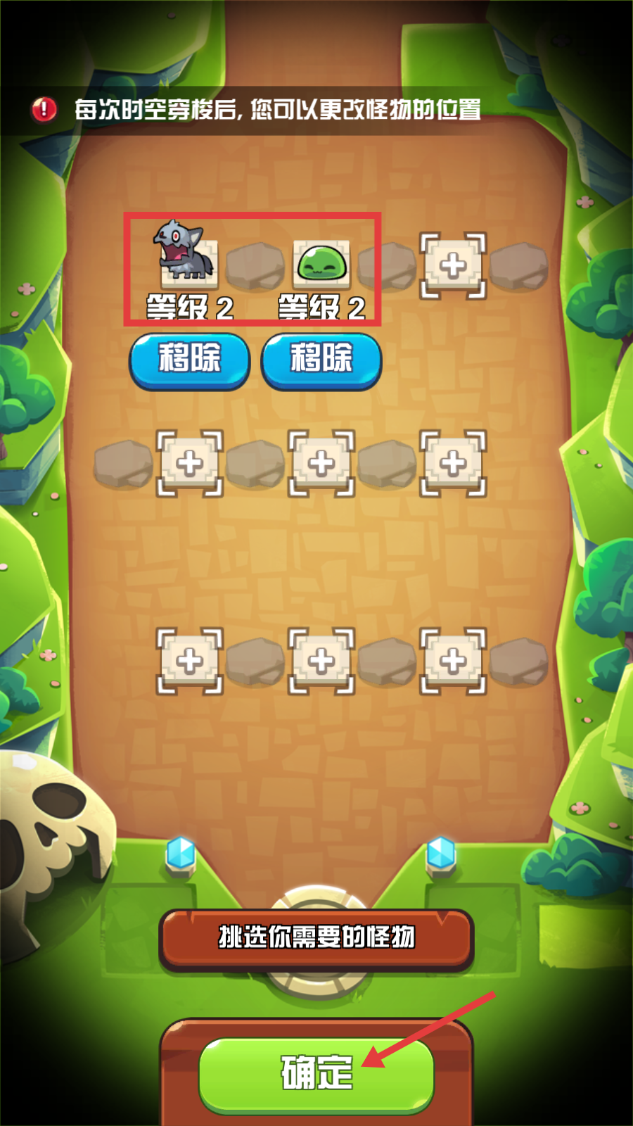 1、点击【开始游戏】,进入游戏场景,开启冒险挑战,准备布置怪物防御敌人。