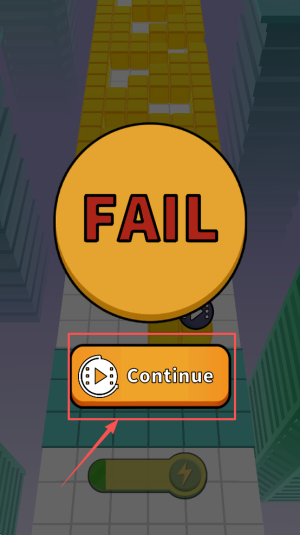 4、最后,如果游戏失败,点击“Continue”按钮重新开始当前关卡。