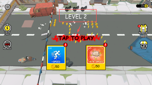 4、如何进入下一关卡:完成当前关卡后,点击“TAP TO PLAY”按钮,选择“LEVEL 2”进入下一关卡。