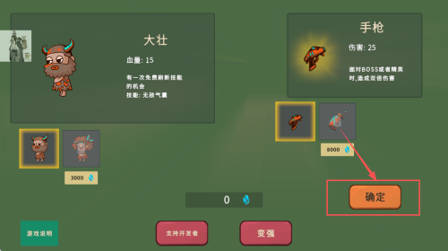 2、如何选择角色:在角色选择界面,点击“确定”按钮选择角色“大壮”。