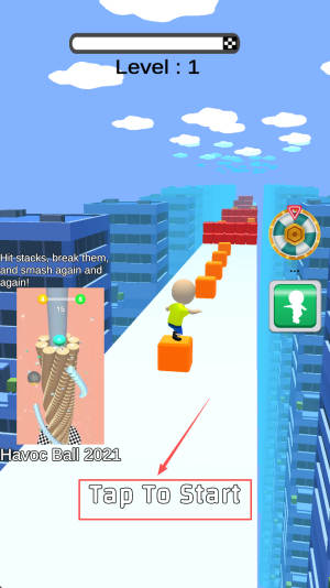 2、接着,在Level 1界面点击“Tap To Start”,即可开始第一关弹球挑战。