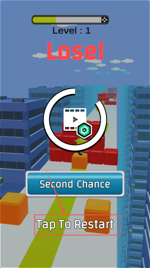 4、最后,若小球掉落失败,点击“Tap To Restart”使用第二次机会重开本关。