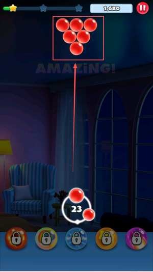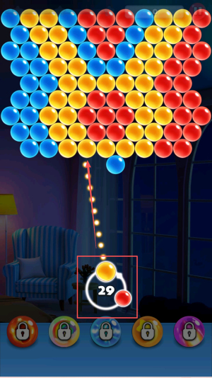 2、规划发射方向:观察上方气泡布局,迅速思考匹配方案,确定弹珠发射方向,确保发射后能与现有气泡形成有效匹配,避免浪费。