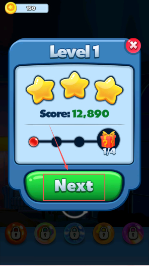 4、最后,完成Level 1后点击“Next”按钮,即可进入下一关继续挑战更高分数。
