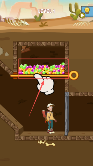 1、开启逃生挑战:进入游戏选择关卡,明确 “拉针解谜、帮助牛仔逃出矿井” 目标,熟悉拉针操作与谜题逻辑,做好准备。