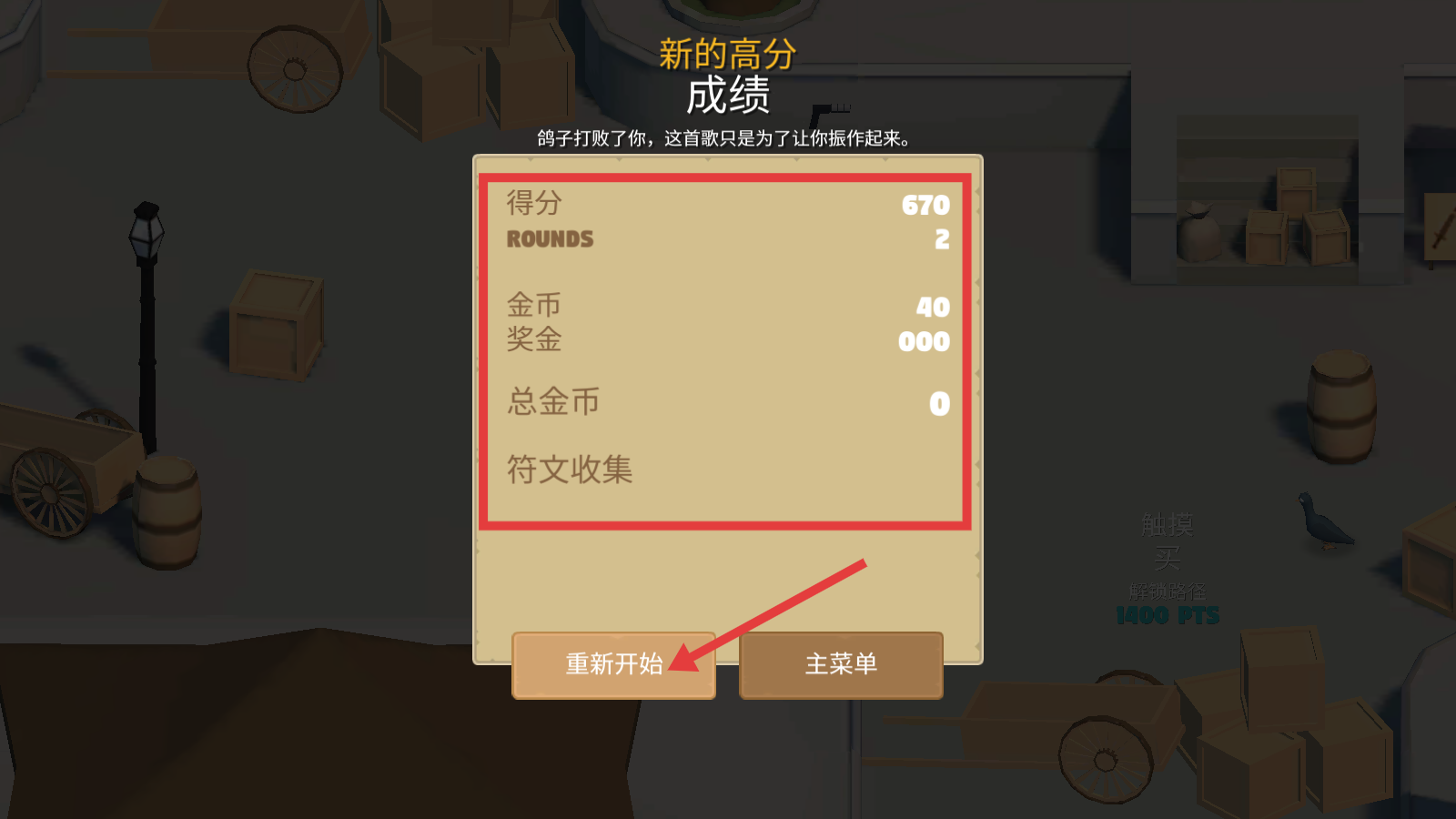 3、击杀鸽子可收集金币,积累分数以解锁路径和伤害升级,留意金币标识及时获取。