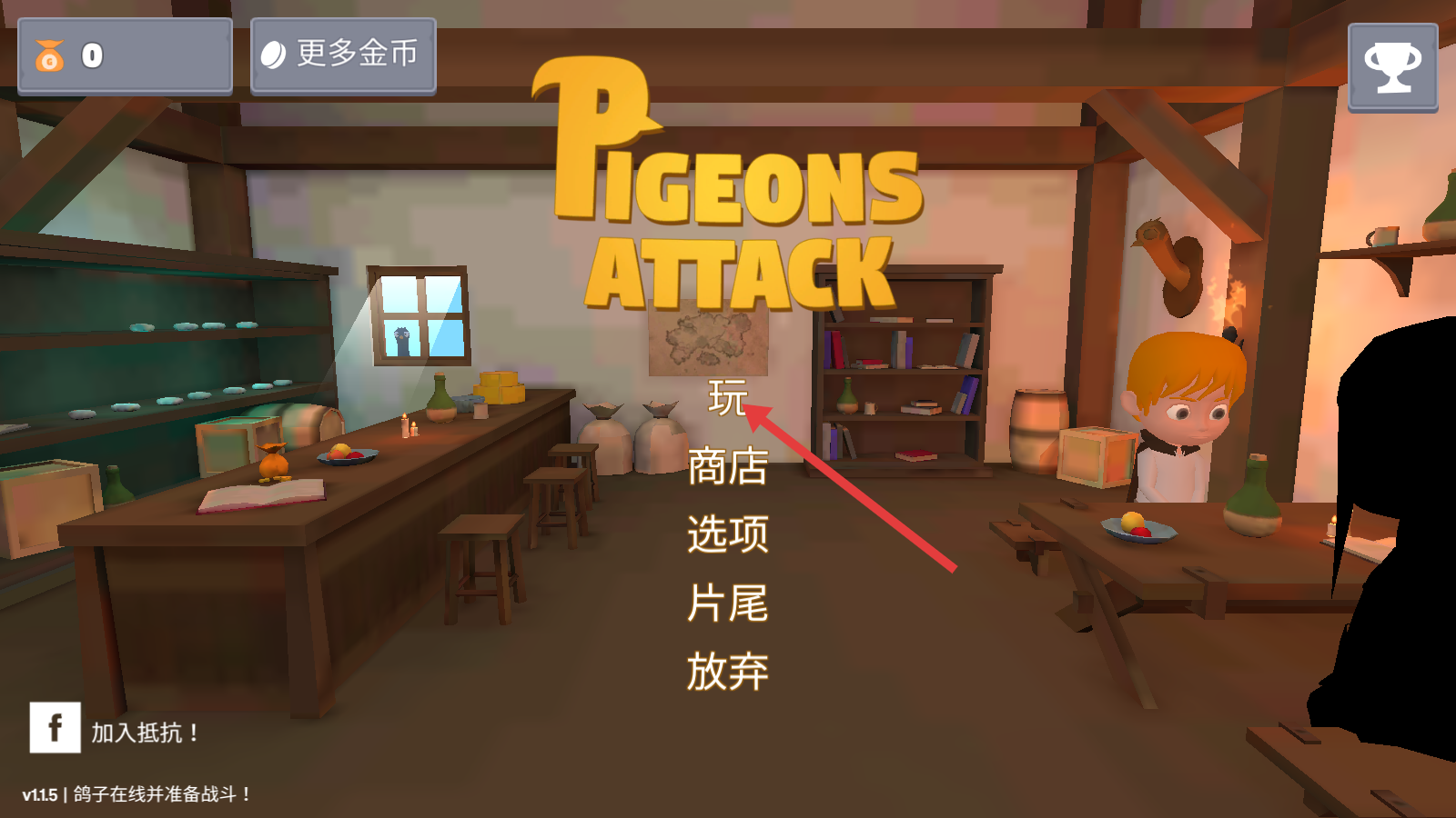 1、进入【Pigeons-Attack】游戏界面后,点击“玩”选项,开始对抗鸽子的任务,可先熟悉界面功能。