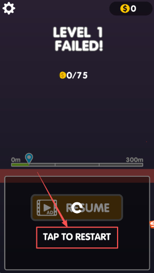 4、最后,如果游戏失败,点击“TAP TO RESTART”按钮尝试重新挑战。